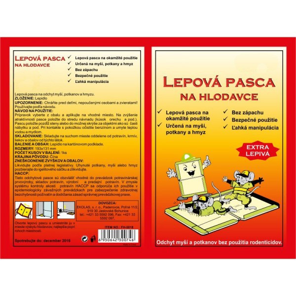Použitie: myši, potkany, hmyzRozmery: 19,3 x13 cm Balenie: 1 ks Kartón: 72 ks